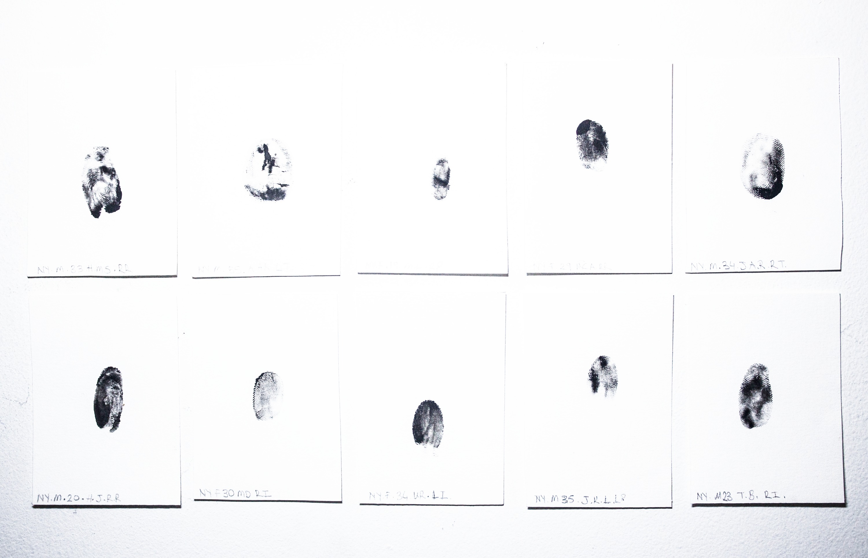 Fingerprints is an archival project that centers on the fingerprints of individuals who identify as immigrants in the United States. The collection features original fingerprints alongside modified versions, as well as objects tied to the themes of immigration, geography, land, and borders.