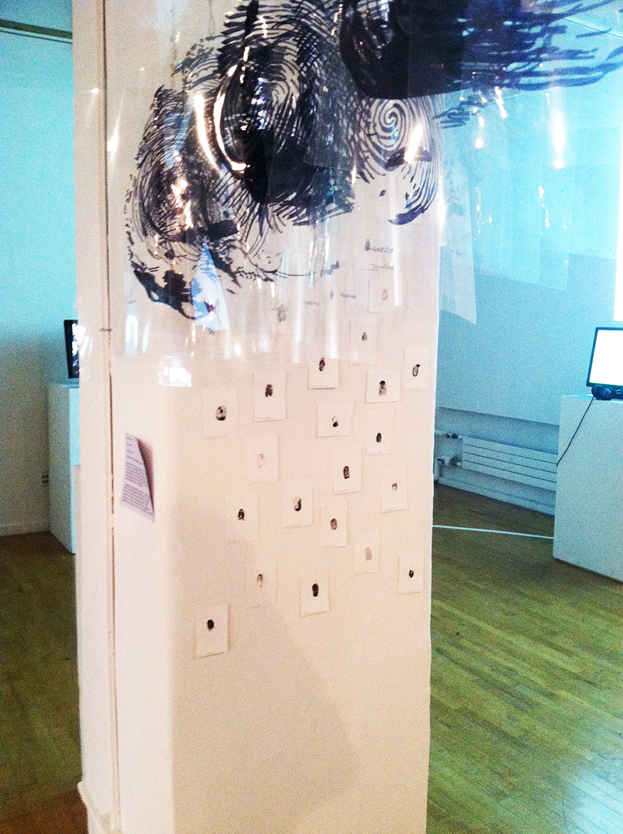 Each fingerprint, with its own encrypted coding system, serves as a symbolic representation of an individual’s distinct identity and journey. However, the deliberate detachment of the fingerprints from specific owners emphasizes the collective narrative of immigrant experiences, underlining the shared struggle and resilience within the same country.